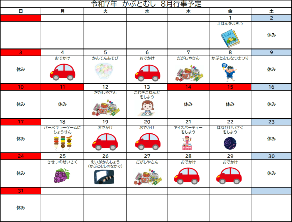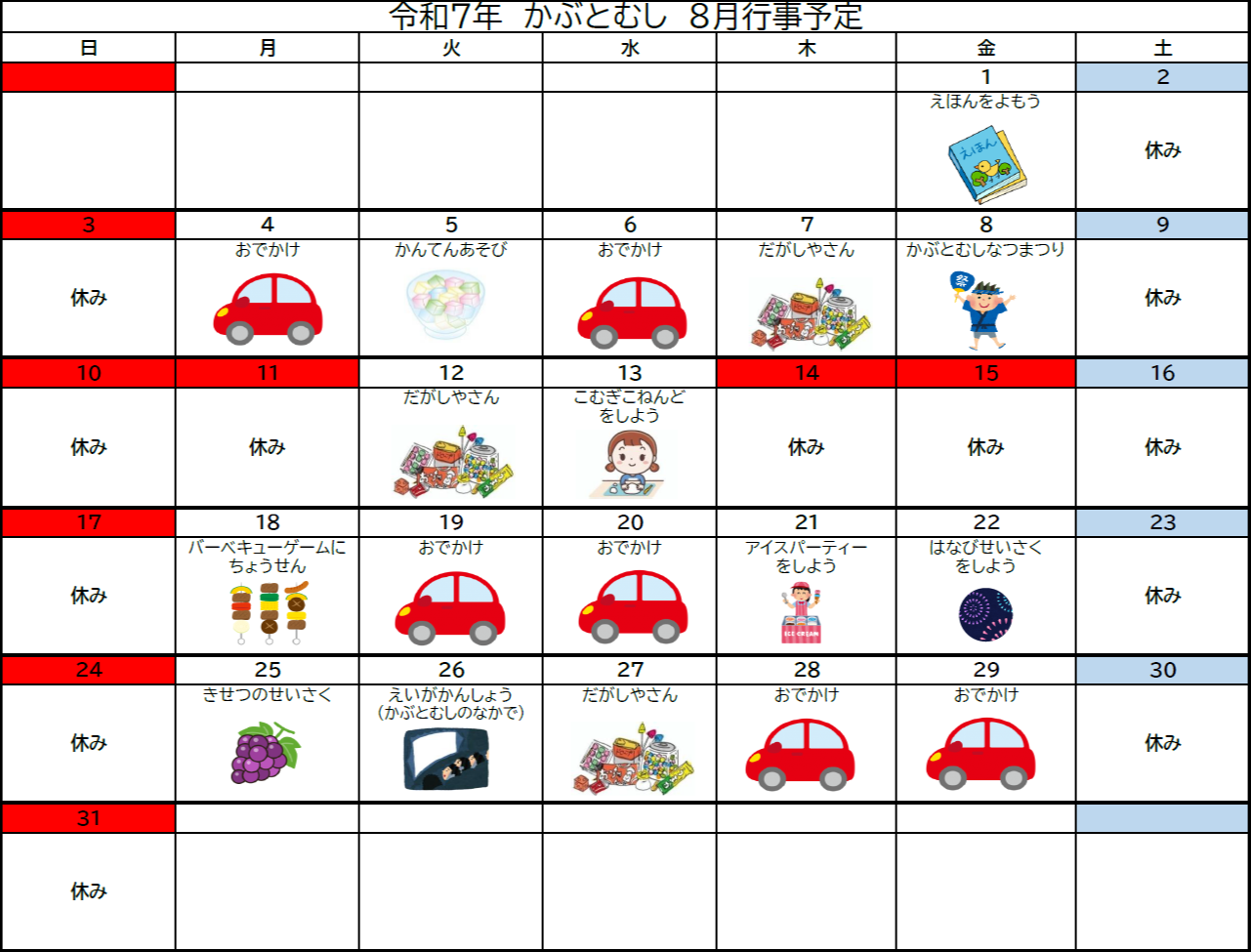 8月予定表